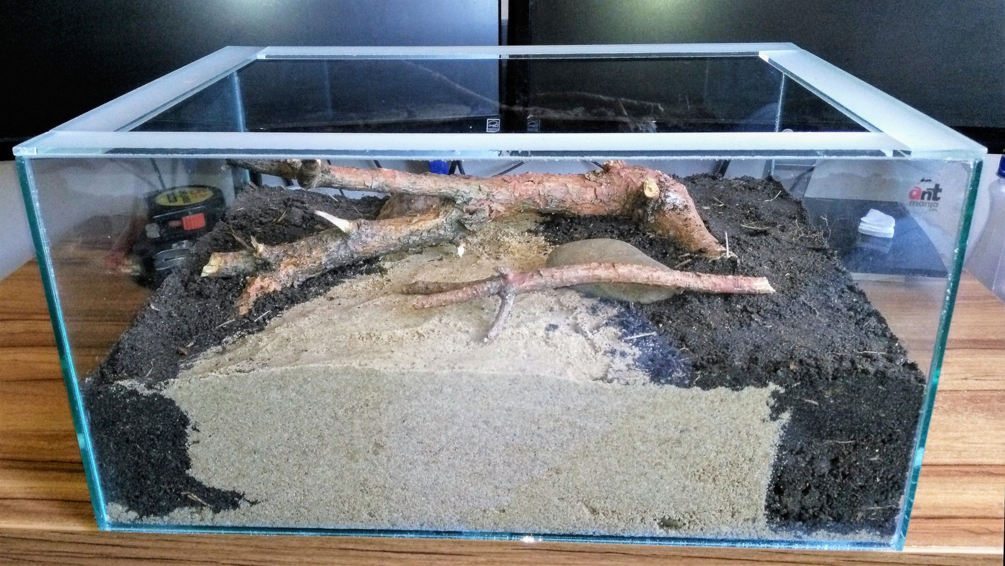 Przygotowałem dla moich mrówek wiwarium o rozmiarach 40x30x20 cm. Z rantem, bez pokrywy. Zbiornik zamówiłem w sklepie http://mrowkoyad.pl/