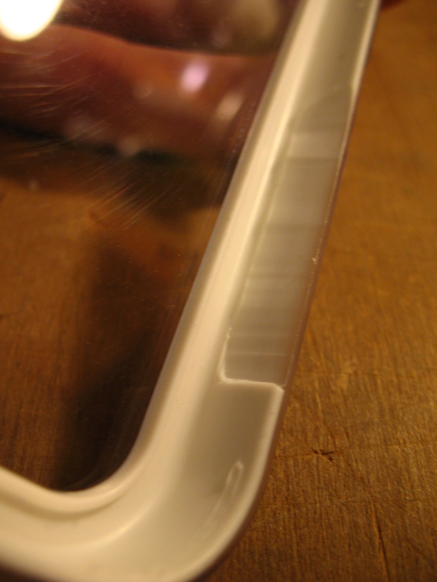 Otwór zrobiłem mini szlifierką. Odrysowałem,  wywierciłem obok siebie dziury w odległości 1-2mm od linii i potem cisnąłem wiertłem w bok żeby połączyć dziury. W ten sam sposób  (bokiem wiertła) szlifowałem brzeg często przymierzając.