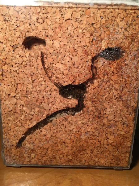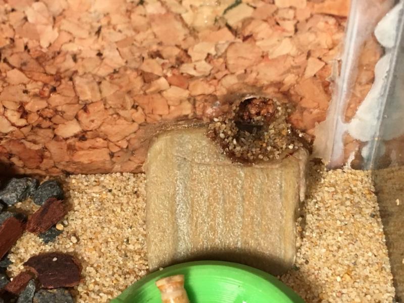 3.03.19 Przez ostatnie 1,5 dnia nawadniałem gniazdo, o godzinie 15:00 wyjąłem zatyczkę z gniazda i oświetliłem arenę lampką biurkową. Przeprowadzka trwała jakieś 3 godziny, ostatnie robotnice (około 10) nie zamierzały się ruszyć więc zostały wyeksmitowane siłą.