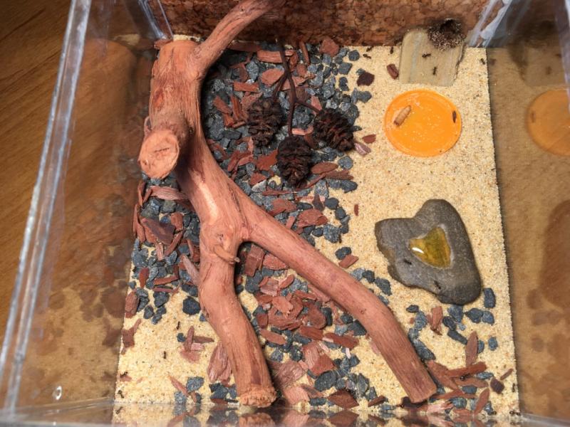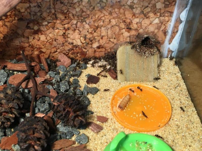 Najwyraźniej troszkę przesadziłem z nawadnianiem albo korek wpił to co miał wpić-mrówki nagle zaczęły mocno zaklejać gniazdo. Do tego dochodzi skraplanie przy różnicy temperatur podczas wietrzenia pokoju.