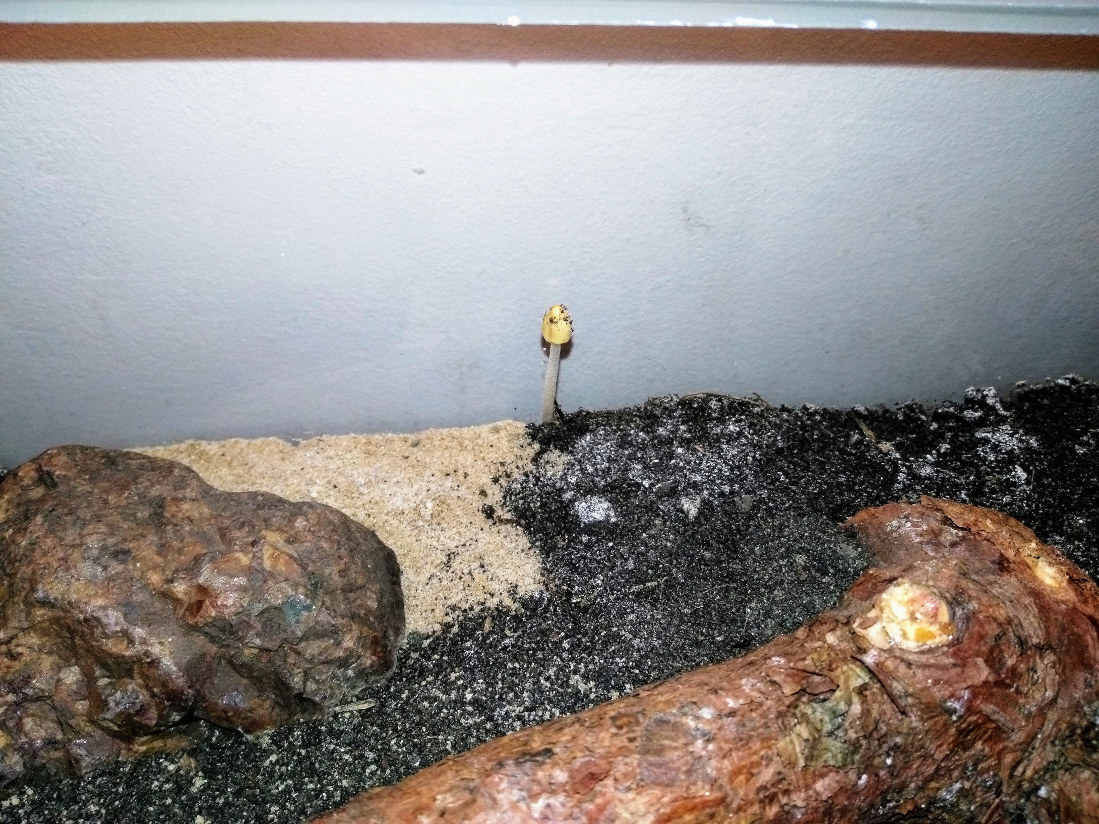 To owocniki jakiegoś grzyba saprotroficznego, najprawdopodobniej zaczęły rozkładać się patyki których użyłeś do rusztowania. Miałem ten sam problem w swoich wiwariach, co prawda nie z grzybami kapeluszowymi, ale grzyb to grzyb. Może dotyczyć on również drewna leżącego na powierzchni i stosowanie korzeni akwarystycznych i gotowanie w soli nic nie pomoże, dlatego ostatecznie zrezygnowałem z drewna. Owocniki przez pewien czas mogą się nie pojawiać, ale raczej problem szybko nie zniknie, na trawnikach trwa to latami. Najgorsza sytuacja może zaistnieć jak na dnie będzie zbyt wilgotno i powstaną warunki beztlenowe, ale w wiwarium z mrówkami dzięki korytarzom wszystko powinno być przewietrzone. Ja w swoich roślinnych wiwariach robię fałszywe dno. Zdecydowanie poprawia i stabilizuje warunki wodne w podłożu, ale uszczelnienie drenażu w wiwarium dla mrówek mogłoby być niezłym wyzwaniem. Nie wiem na ile możesz na to pozwolić, ale obniżenie wilgotności powinno zmniejszyć intensywność pojawiania się owocników, chociaż grzybki są niegroźne i urozmaicają krajobraz.
