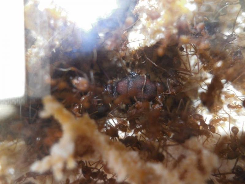 Pojawiło się już kilka masywnych robotnic o szerokości głowy ok. 4 mm i długości ciała ok. 11 mm, co wskazuje już nie na zbieraczki, tylko jednych z pierwszych pełnoprawnych obrońców kolonii.