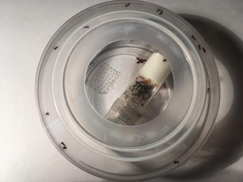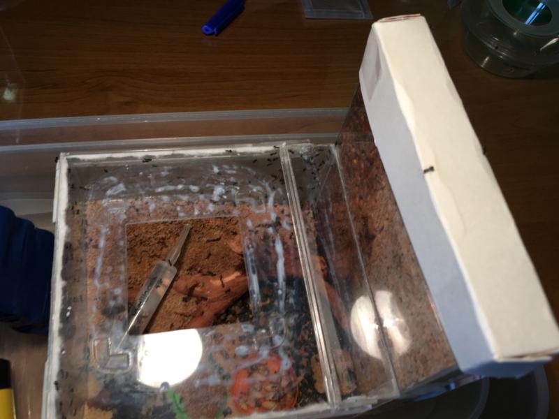 Wczoraj (28.04) podczas karmienia uciekło mi 9 mrówek z chthonolasius. Na szczęście je wyłapałem, jednak zmusiły mnie tym do podłączenia areny.