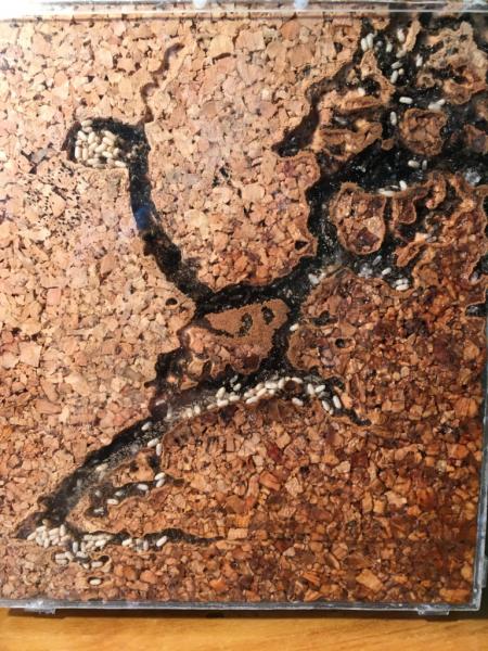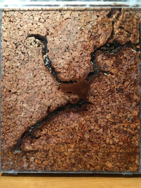 29.03.2020 Niger długo zabierały się za sprzątanie areny (wrzucanie martwych robotnic do miodu), zaczęły dopiero tydzień temu, dziś wyjąłem ostatnie ciała i w końcu doczekały się wystroju areny.