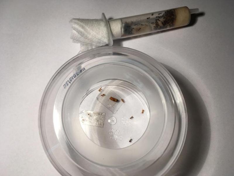 Jak widać zacząłem im podawać wodę z cukrem, taka zatyczka z igły wystarcza im na 3dni. Dostają 3-4 mączniki dziennie, po 24h zostaje z nich zwykle sam pancerzyk.
