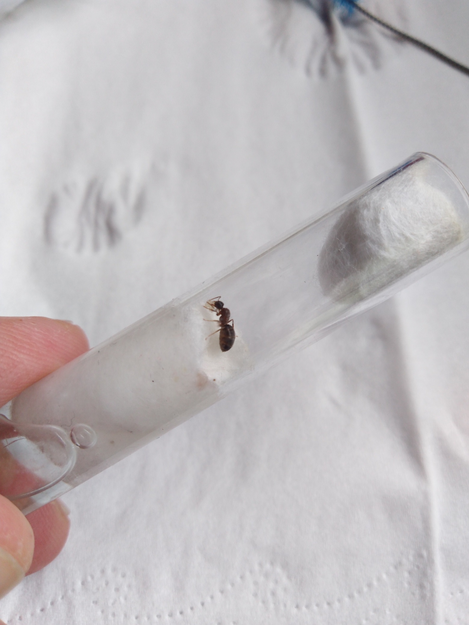 Ta pierwsza to może być królowa Cataglyphis nodus, jeśli rzeczywiście jest tak duża. I ja bym dał jej do probówki zrulowany kawałek papieru (+ pewnie trochę piasku), bo na szkle będzie się ślizgać.