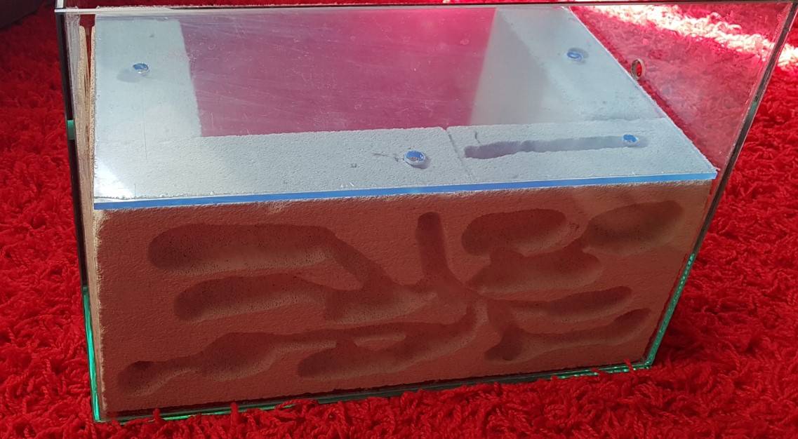 EDIT: Zapomniałem o jednej rzeczy. Musisz wstawić dodatkowe ścianki z plexy wewnątrz, żeby zabezpieczały przed przegryzieniem się mrówek pod arenę.