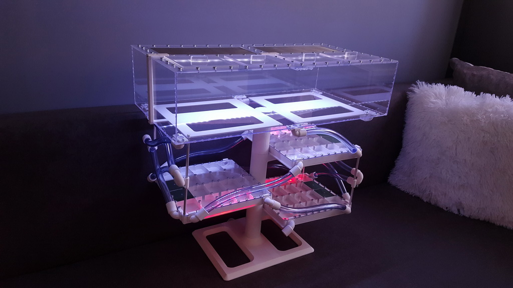 Sama arena ma wymiar 50x25x12 cm i wyposażona jest od spodu w 6 niezależnych przyłączy ze śluzami. W pokrywie znajdują dwie sekcje wentylacji