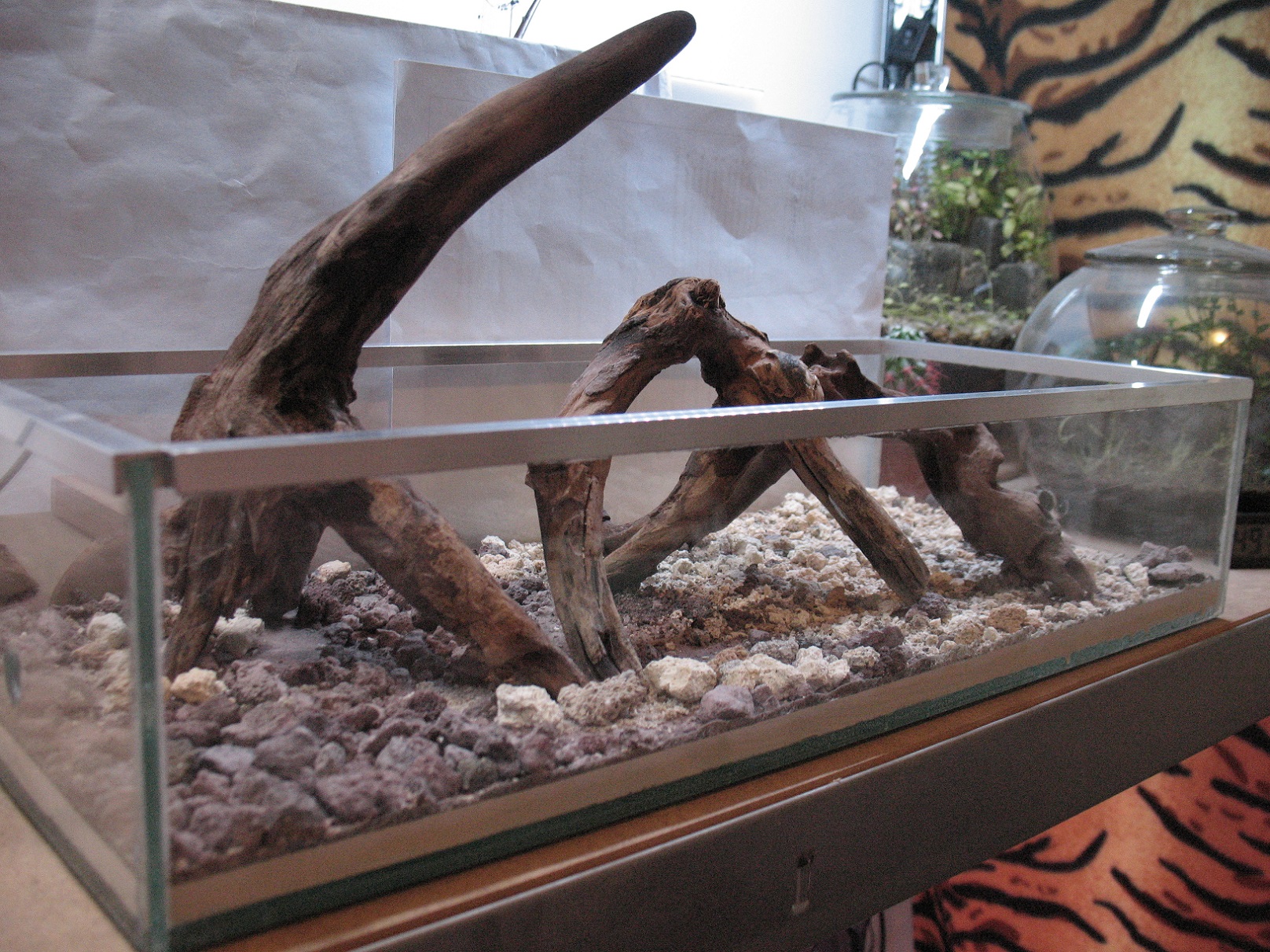 Po doświadczeniach ze szkłem wystrój to była już czysta przyjemność. Wylewka z gipsu, klej Vicol, lawa, pumeks, korzenie.