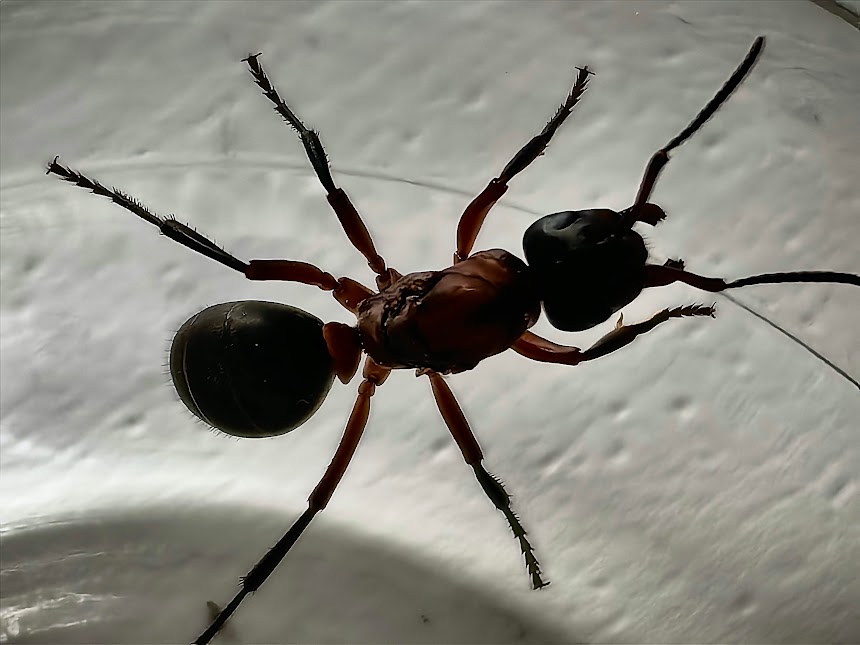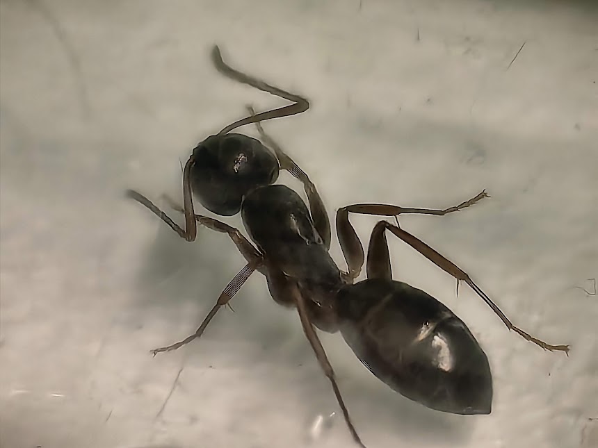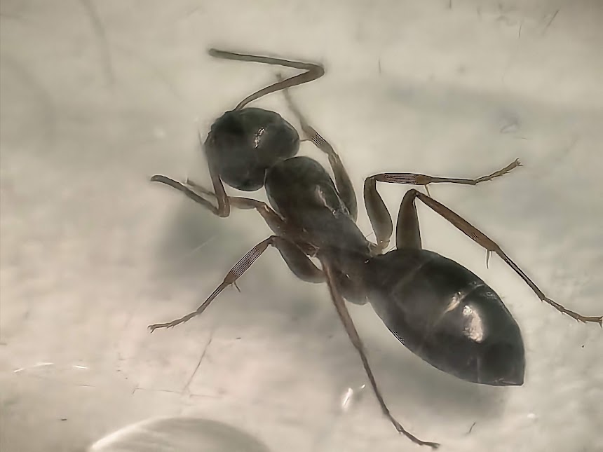 To robotnica major Camponotus fallax, wraz z robotnicą minor. Królowa tego gatunku może być tego samego rozmiaru, co ten major, ale będzie mieć nieco większy i bardziej owalny tułów. Na załączonym zdjęciu widać, że z daleka różnica jest dość subtelna, ale jest. Z bliska można dojrzeć blizny po skrzydłach po bokach.
