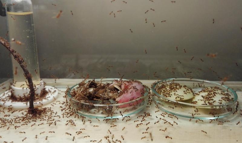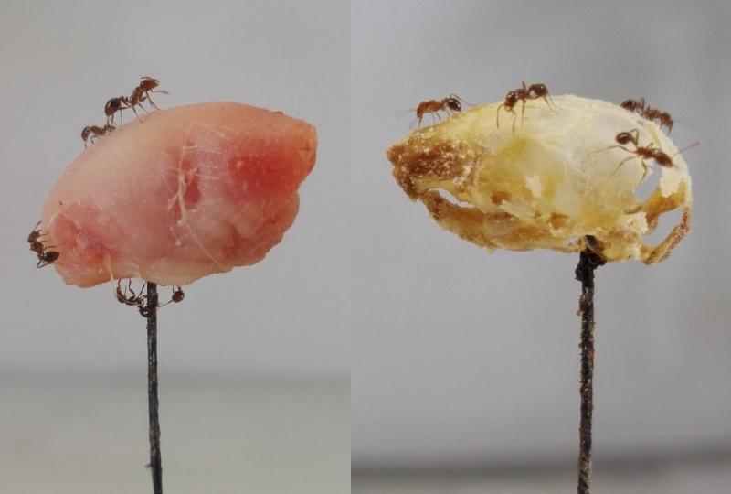 Do samego gniazda przejdę za moment, najpierw krótko opiszę dalszy los kolonii. Larwy Formica s.str. jedzą dużo i rosną szybko, z tego względu zaczęły od tego momentu dostawać naprawdę dużo białka. Owady, pająki, mięso... larwy rosły, królowa składała jaja. Chciałem je nawet zimować, ale ich rozwój tego nie umożliwiał i ostatecznie w swoim pierwszym roku nie poszły spać. Krótsze dni zrobiły jednak swoje i zimą królowa składała co prawda jaja, ale zdecydowanie mniej, niż zaczęła na przykład składać w przeciągu ostatnich kilku dni.