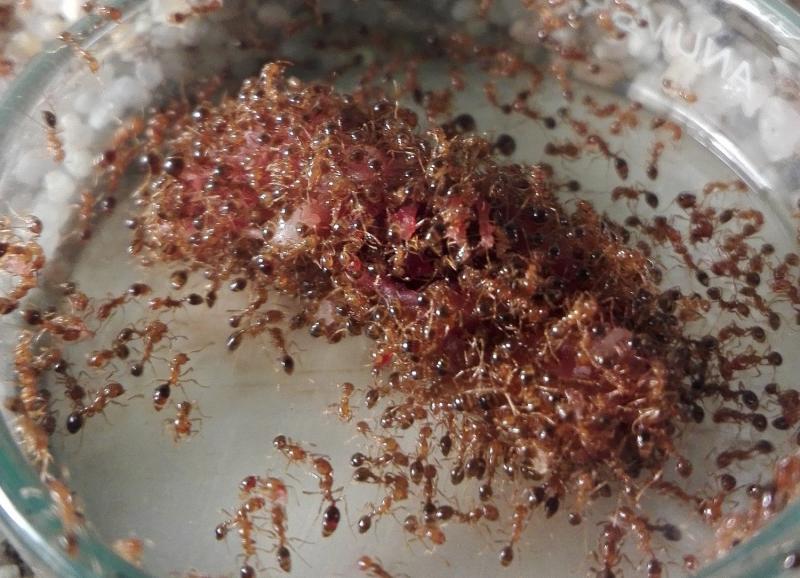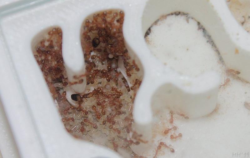Długo odwlekałem zakup tego gatunku, sam w sumie nie wiem dlaczego. Ciągle pamiętam, jak je zobaczyłem pierwszy raz w naturze - coś pięknego... Musiały, po prostu musiały w końcu do mnie trafić. Niewielka kolonia, ale biała porcja potomstwa sukcesywnie się powiększa, a liczba robotnic stopniowo wzrasta... W planach niemałe, naturalne terrarium, ale to jak ich trochę przybędzie. Niestety dzisiaj bez zdjęcia, bo jakoś wybitnie nie idzie mi ich sfotografowanie w obecnym formikarium.