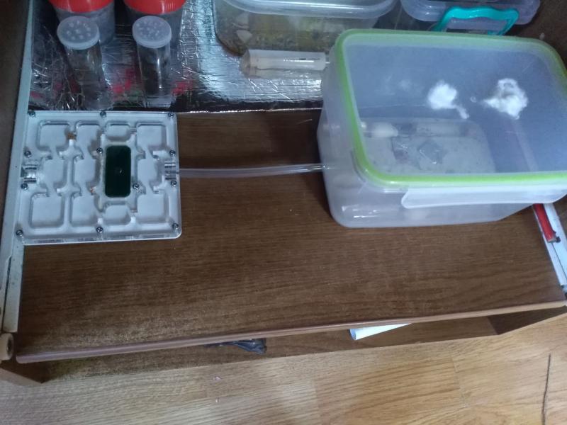 W kolonii pojawił się samiec, a jako że u tego gatunku teoretycznie występuje rójka w gnieździe, to żywię nadzieje iż w niedługim czasie pojawią się również królowe, które następnie zostaną przez samców zaplemnione i dołączą do kolonii. Zdjęcia zacznę wrzucać kiedy mrówki przeprowadzą się do gniazda akrylowego.
