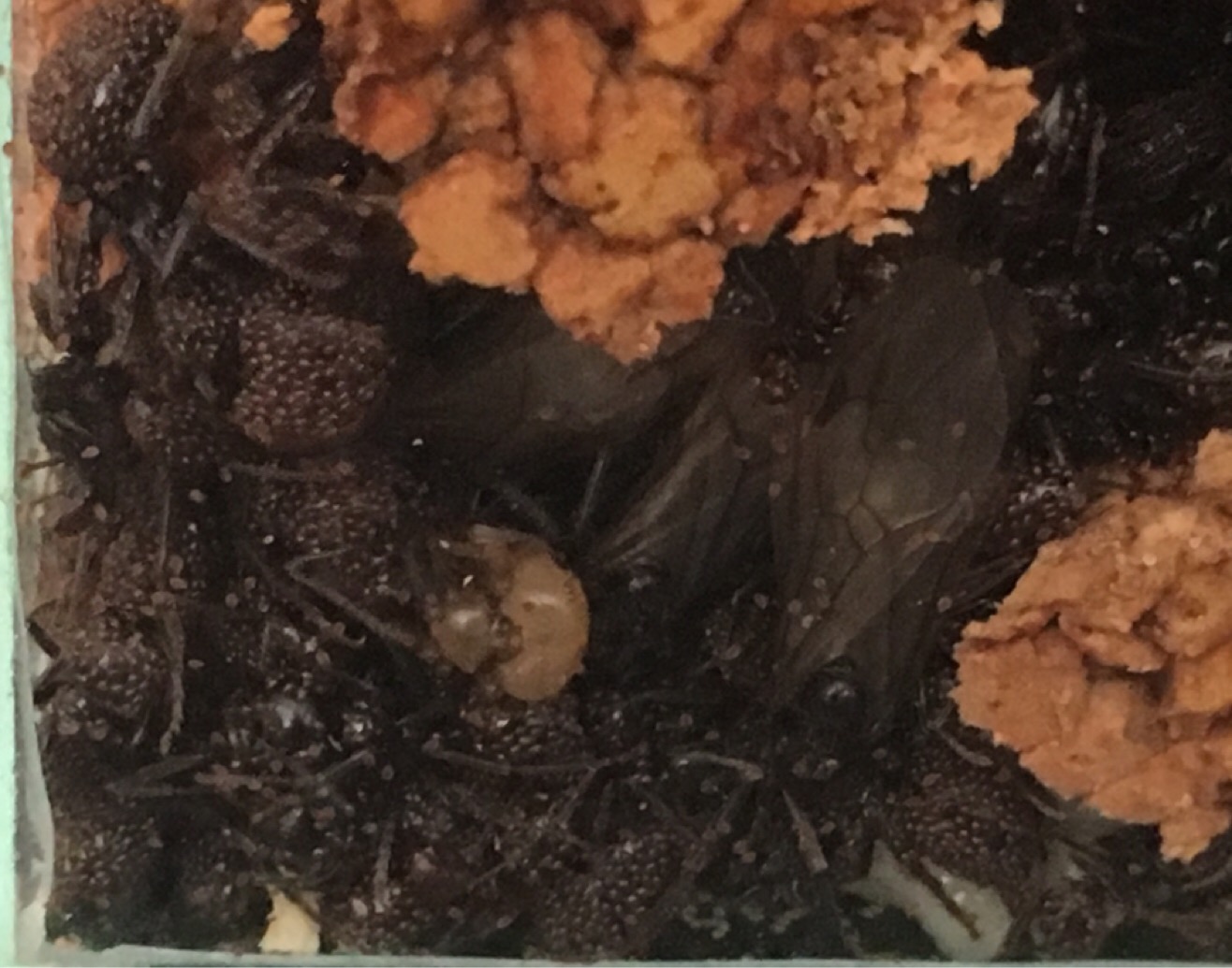 To pasożytnicze roztocza. Skąd te skrzydlate osobniki w koloni z 90 robotnicami ? Skąd w ogóle masz te mrówki?