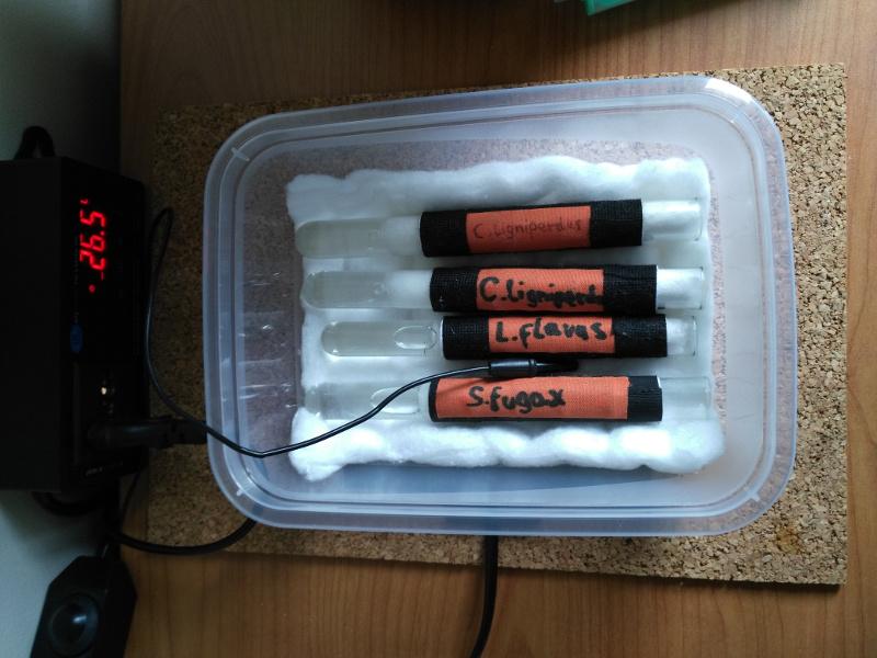 Nie polecam tego sposobu bez termoregulatora, ponieważ ogrzewamy cały pojemnik i w przypadku skoku temperatury, mrówki nie mogą uciec do chłodniejszych komór