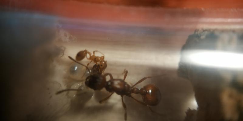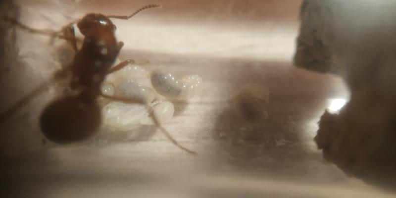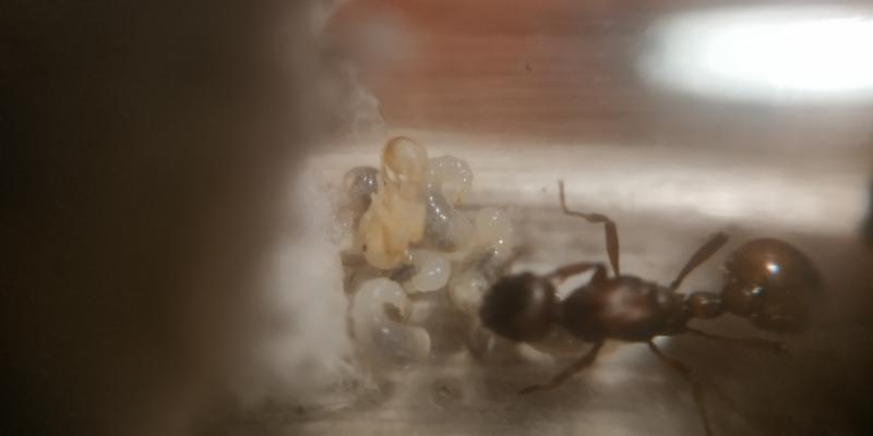 Kolonia na dzień dzisiejszy liczy 4 robotnice i od pewnego czasu widzę brak zainteresowania białkiem. Potomstwo znajduje się w fazie jajeczek i nie chce przejść do kolejnej formy. Możliwa stagnacja? Nie wiem, chociaż nie chciałbym ich zimować w aktualnym stanie, ponieważ jest duża szansa na utratę jajeczek, a do larw im nie spieszno. Co radzicie? Przeczekać jeszcze trochę, czy za parę dni wstawiać do lodówki?