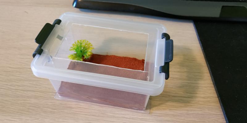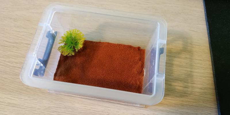 Będąc w sklepie Auchan zakupiłem plastikowe pojemniki, które wydały mi się odpowiednie, aby przerobić je na nowe arenki dla moich kolonii. Wykonałem je techniką Korka tj. gipsowa wylewka z czerwonym pigmentem, na tym rozsmarować klej do drewna i posypać czerwonym piachem.