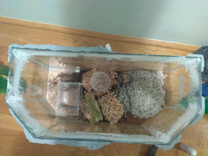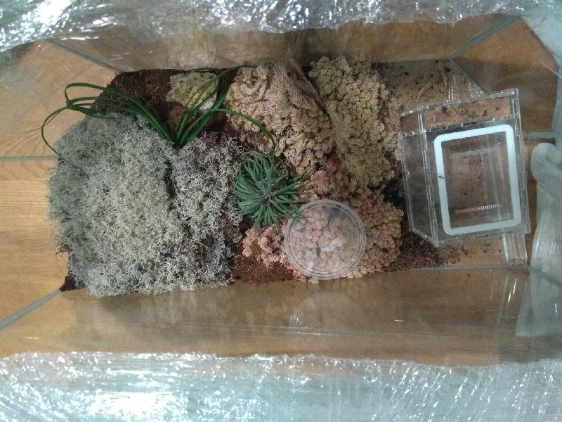Paczka przyjechała do mnie 27 lutego. Miałem dla nico przyprzygotowane 2 sandwiche o wymiarach 30x30x2 oraz arenę 30x30. Szybko przygotowałem jeden sandwich i wstawiłem do akwarium. Zaczęło się intensywne kopanie!