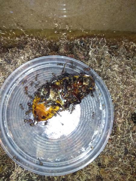 Mam śmiałą teorię, która prawdopodobnie jest nieprawdziwa, że nico zjadają trupy uzupełniając w ten sposób białko przez co nie popadają w stagnację tak jak to Camponotus mają w zwyczaju...