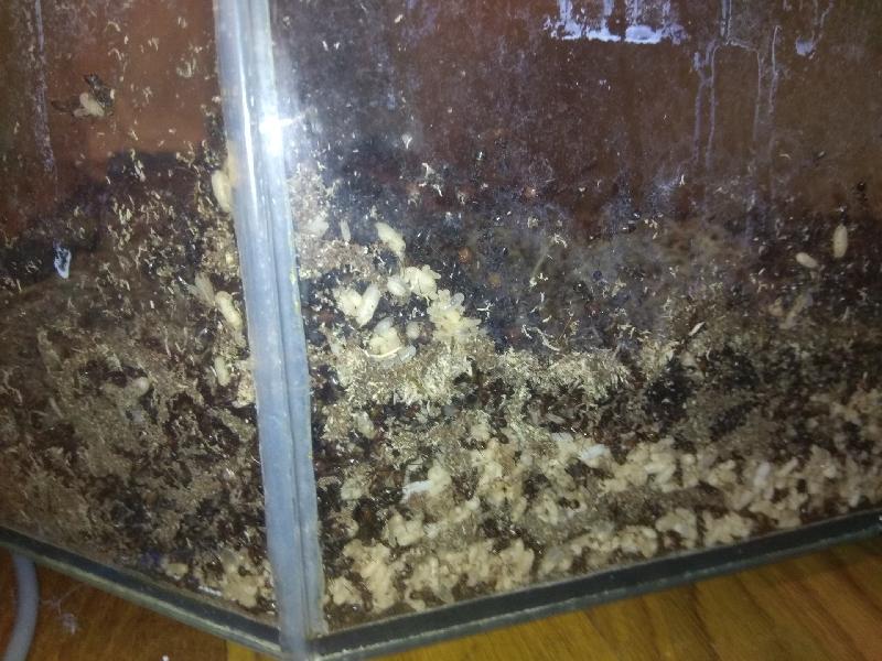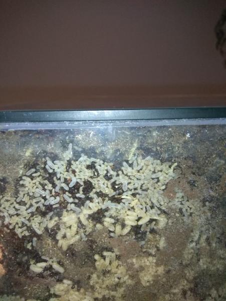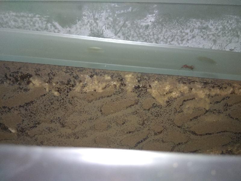Z ciekawostek to zauważyłem, że robotnice "wkładają" larwy w ściany korytarzy: