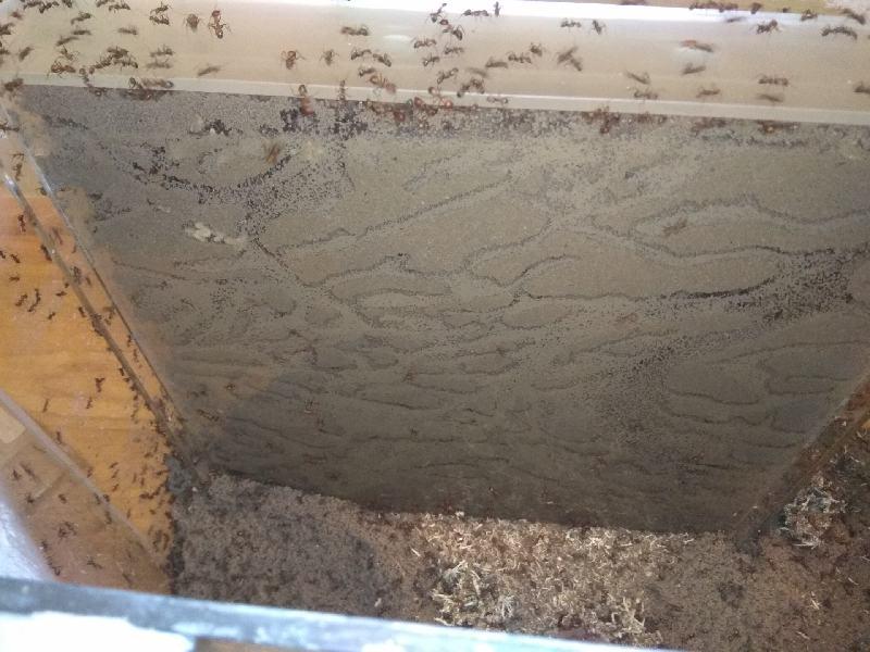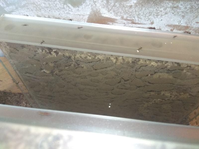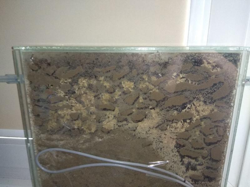 4 dni po zaglądnięciu do gniazda postanowiłem sprawdzić jak mrówki sobie radzą i zajrzałem od spodu. O to co zobaczyłem:
