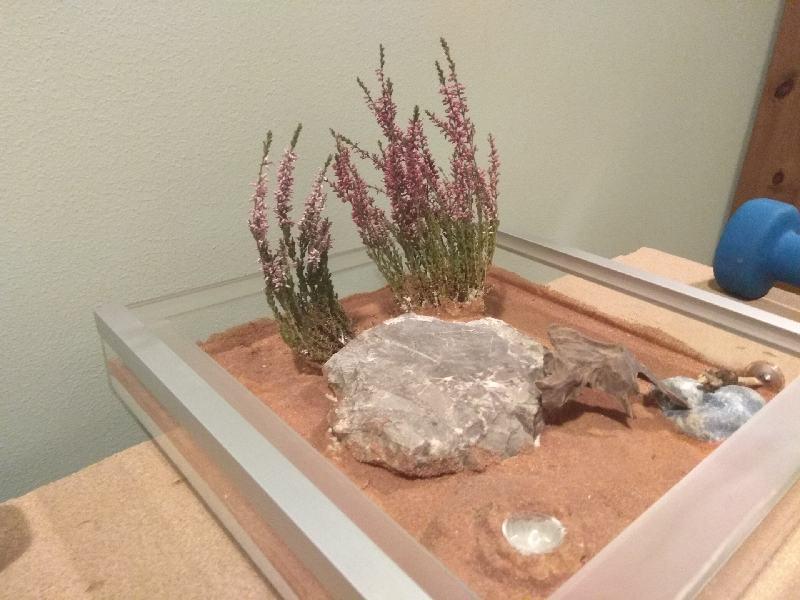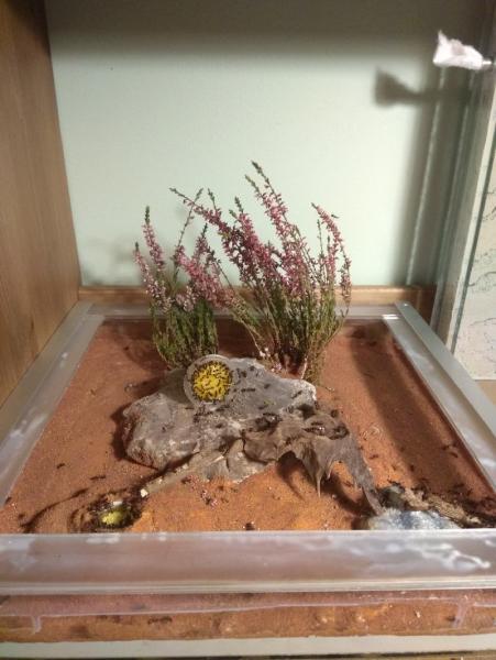 Postanowiłem odgiąć wrzosy w stronę środka areny tak aby oddalić je od rantu uniemożliwiając mrówkom wyskakiwanie na zewnątrz.