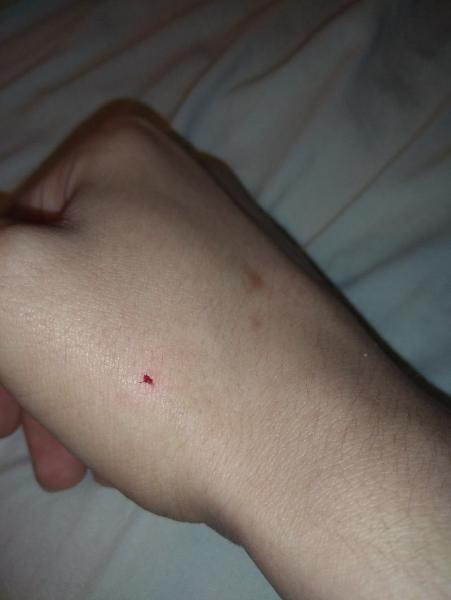Zdjęcie pokazuje ugryzienie majorka nico... Nie sądziłem, że są w stanie dogryźć się do krwi... Inna sprawa, że natrafił na dobre miejsce gdzie skóra jest cienka j można łatwo ją chwycić. Na szczęście większość ugryzień się tak nie kończy.