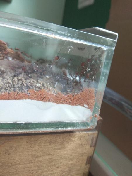 Po 8 dniach wpuściłem kilka mrówek na arenę, żeby zobaczyć czy rant z fluonem dobrze działają oraz jqk mrówki się na niej prezentują.