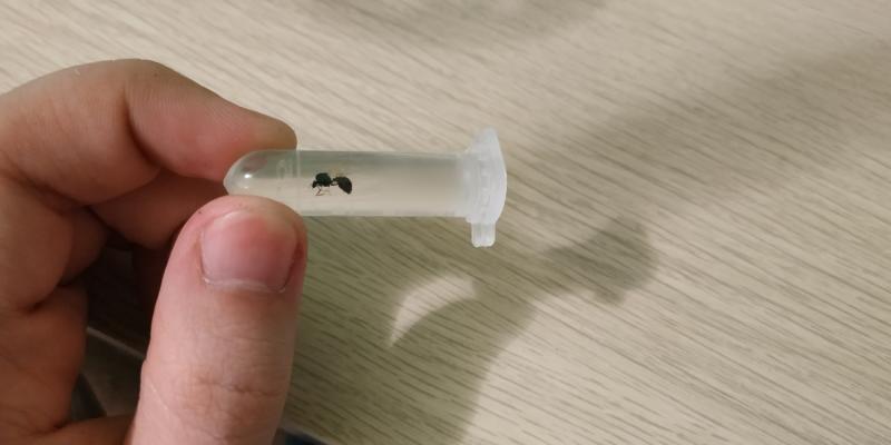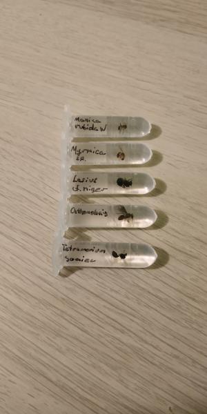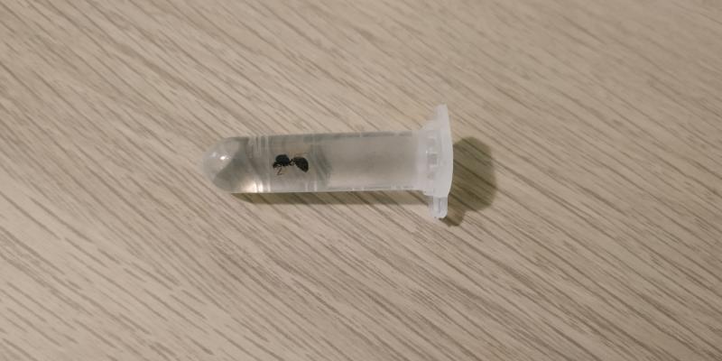 Parę miesięcy temu, posiadając kilka trupków różnych gatunków mrówek, postanowiłem zrobić z nich mini kolekcję królowych w eppendorfach, zakonserwowanych w alkoholu izopropylowym, bo akurat taki miałem pod ręką. Niestety, nie było to zbyt dobre rozwiązanie, ponieważ okaz poruszał się w górę i dół przy każdym obróceniu eppendorfa, przez co jego obserwacja była bardzo utrudniona Confused
