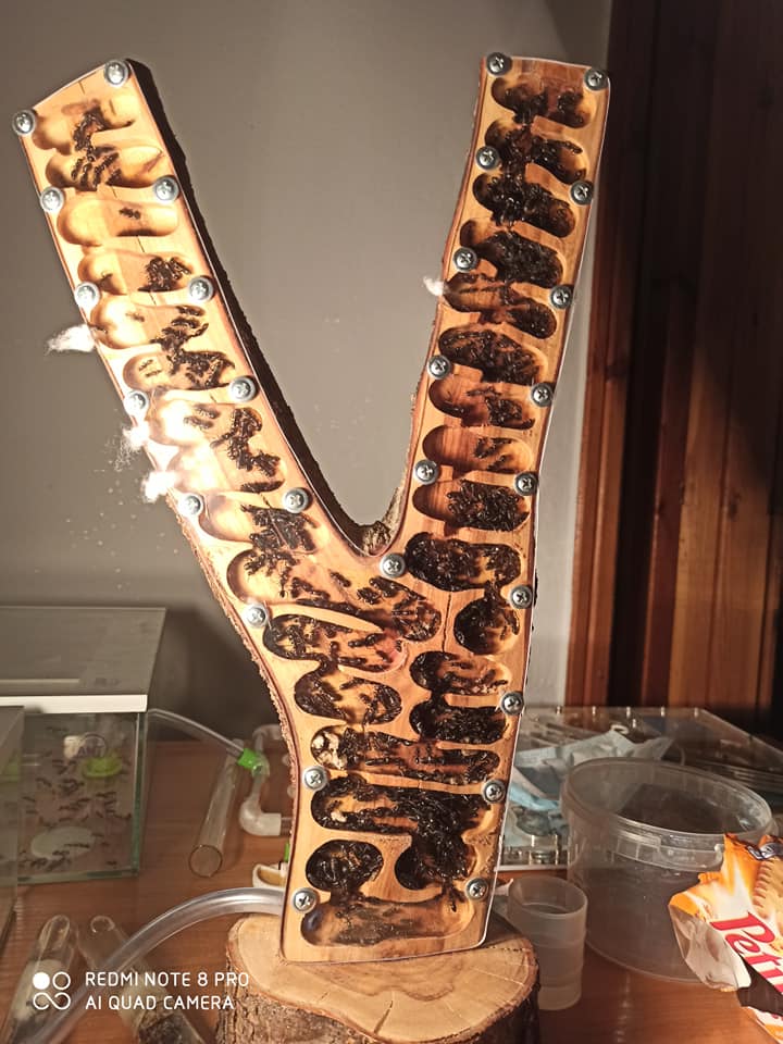 Takie nieobudowane niczym drewno bardzo szybko też schnie, powodując że kolonia mrówek przestaje się rozwijać, a w najgorszym wypadku zdycha. O czym coraz więcej postów pojawia się na grupach mrówkowych na facebooku. Szczytem niewiedzy i braku wyobraźni są mikro gniazdka z drewna dla samotnych królowych, które osobiście nazywam trumienkami.