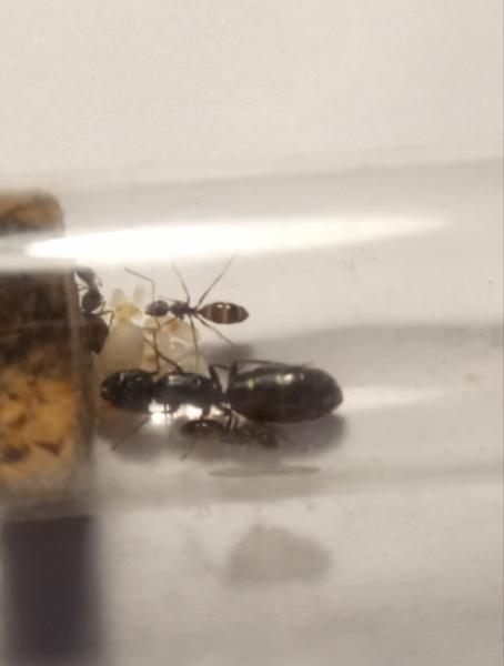 Aktualnie padła jedna robotnica co żaczyna mnie już martwić. Ale uspokajają mnie nowe malutkie larwy z tegorocznych lajek( ale są to tylko 3) i ostatnie stadium larw z zeszłego roku. Swoją drogą smieszą mnie(niewiem czemu)przeźroczyste żołądki larw ale dzięki temu widaż larwy są nakarmione
