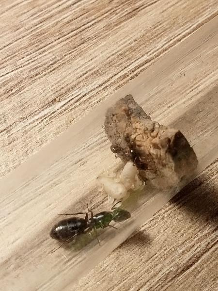 Zapisałem sobie w zapiskach że przez jeszcze 2 dni wychodziły kolejne robotnice a potem mrówki postanowiły wykarmić jeszcze jedną larwę przed stagnacją.