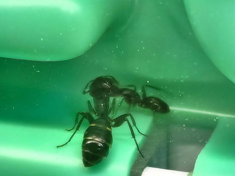 Formica cinerea. Świetne mrówki, nieco panikarskie, ale mimo wszystko w miarę odporne na błędy hodowcy. Królowa zakłada kolonię klasztornie, więc siup do próbówki i zapominasz na kilka tygodni